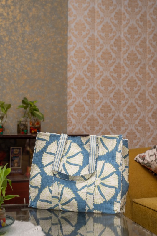 Awdhesh Kumar Ginkgo Bloom Cotton Hand Block Printed Tote Bag for Women