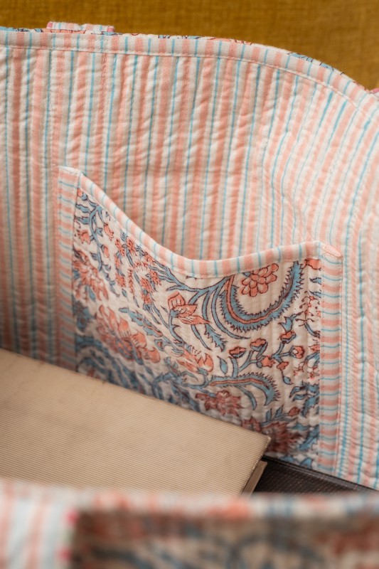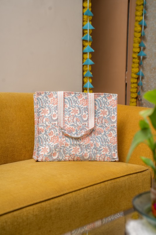 Awdhesh Kumar Floral Paisley Vine Cotton Hand Block Printed Tote Bag for Women