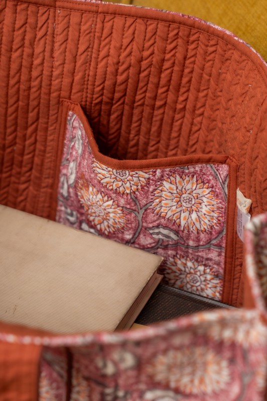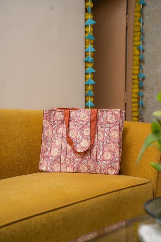 Awdhesh Kumar Vintage Mughal Motif Cotton Hand Block Printed Tote Bag for Women