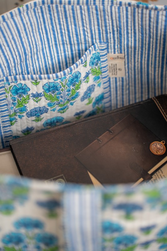 Awdhesh Kumar Mughal-inspired floral Cotton Hand Block Printed Tote Bag for Women