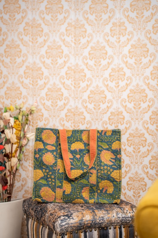 Awdhesh Kumar Mehndi Bloom Bag Cotton Hand Block Printed Tote Bag for Women