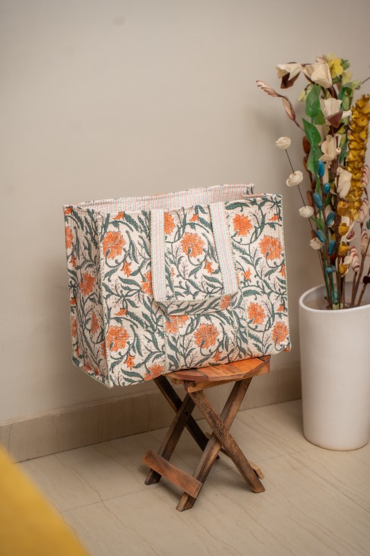 Awdhesh Kumar Ivory Garden Cotton Hand Block Printed Tote Bag for Women