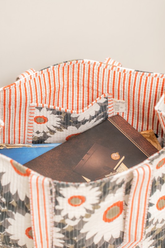 Awdhesh Kumar Cream Meadow Cotton Hand Block Printed Tote Bag for Women