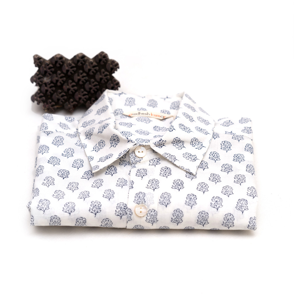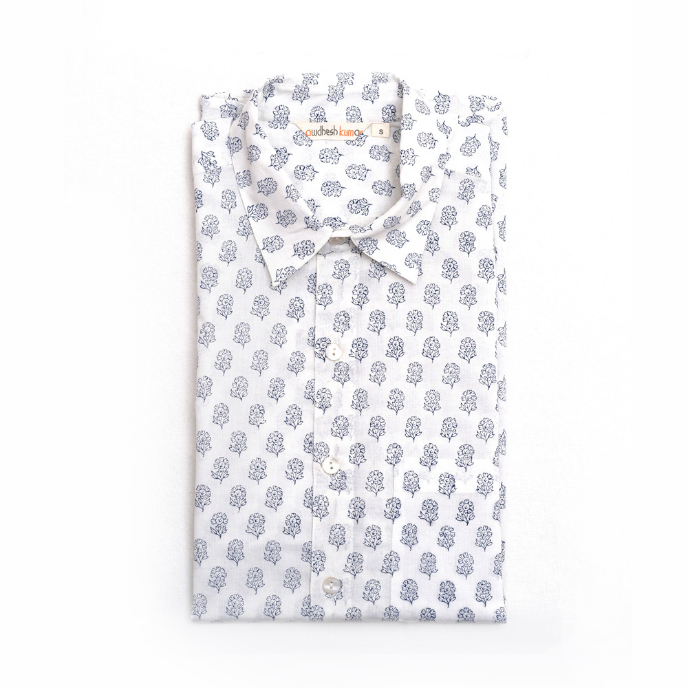 This is hand block printed men's full sleeve shirt, printed by using traditional hand block printing This is hand block printed men's half sleeve shirt, printed by using traditional hand block printing technique, on 100% cotton 60's cambric fabric, with free pigment dyes.