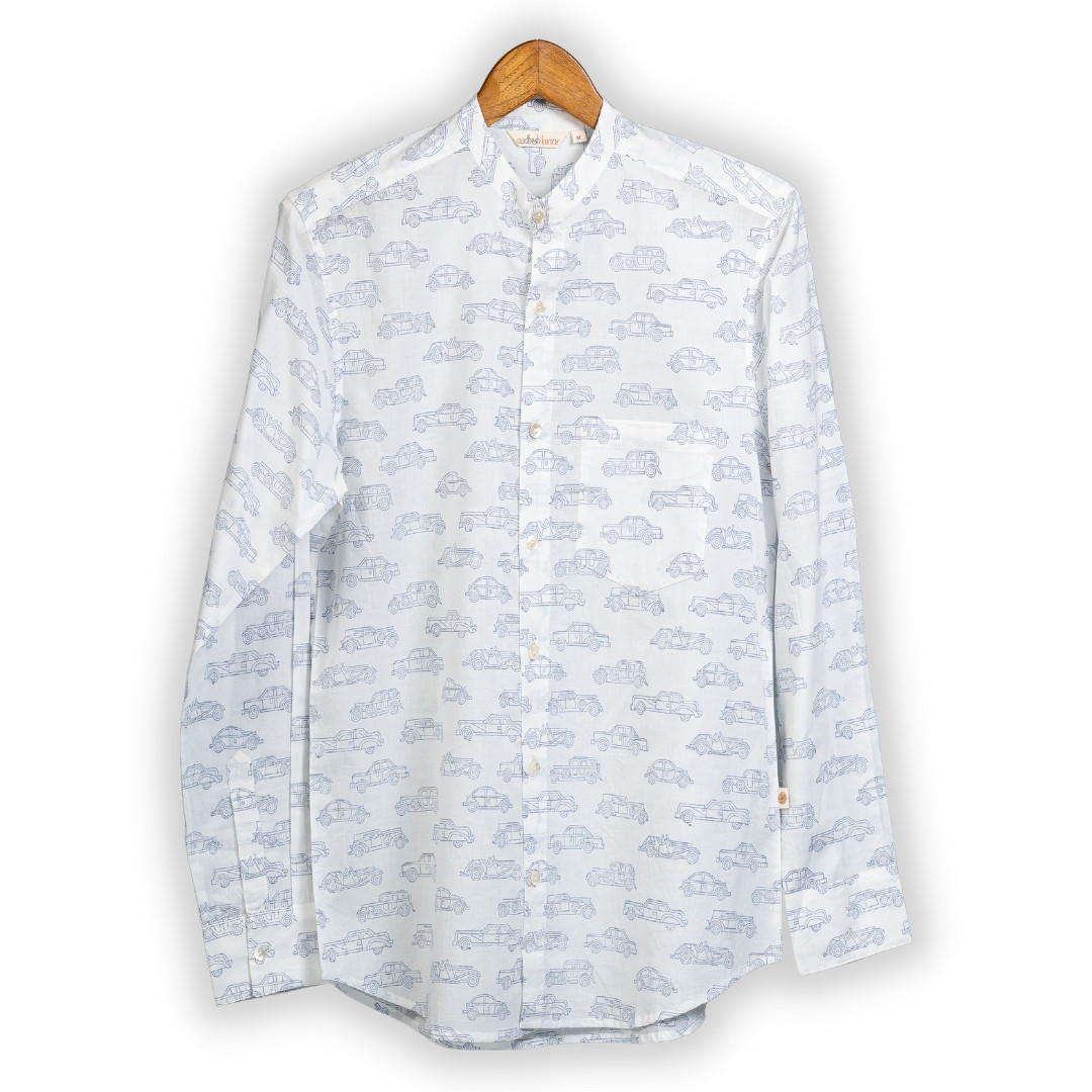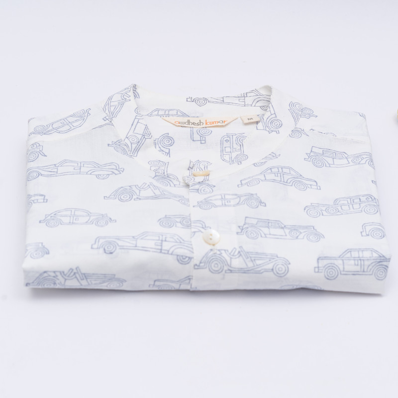 Full Sleeve Indian Hand Block Print Shirt Car Grey Design Shirt 100% Cotton Fabric