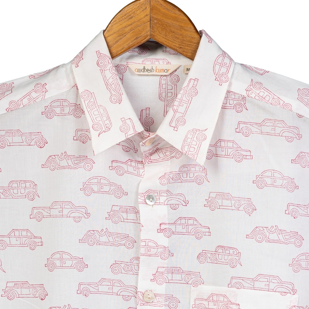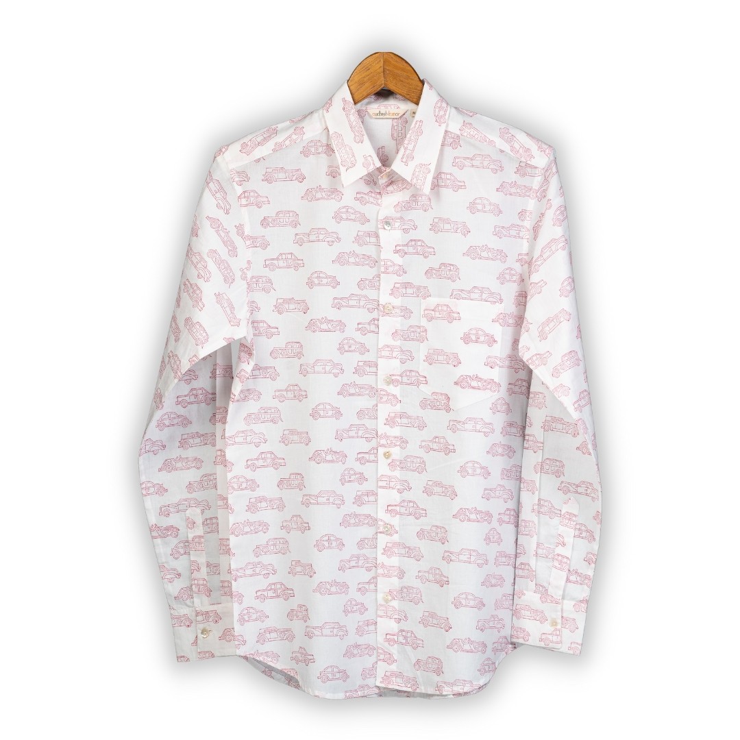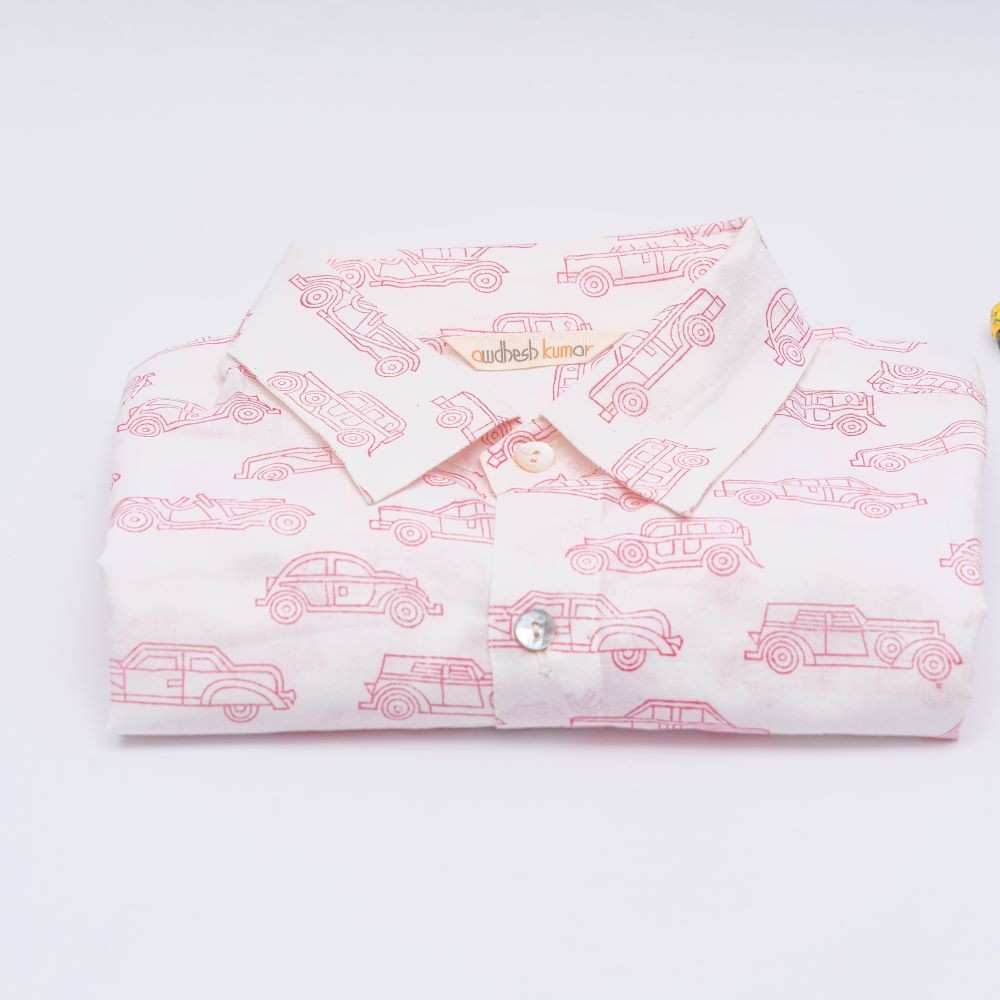 Full Sleeve Indian Hand Block Print Shirt Car Pink Design Shirt 100% Cotton Fabric