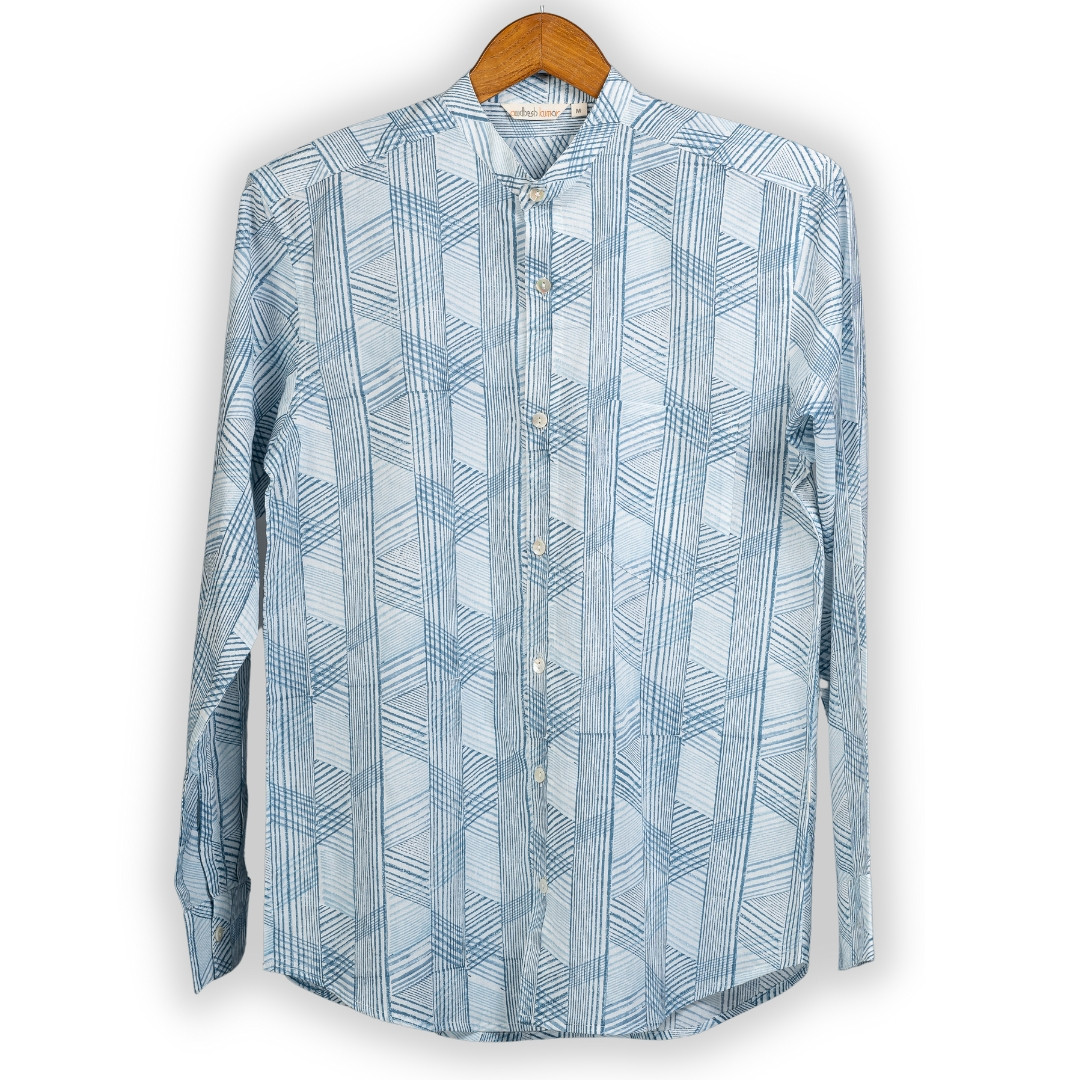Full Sleeve Indian Hand Block Print Shirt Game of Line Blue Design Shirt 100% Cotton Fabric