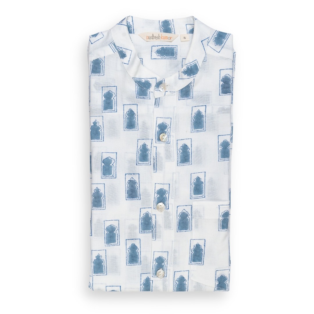 Full Sleeve Indian Hand Block Print Shirt Jaipur Jarokha Blue Design Shirt 100% Cotton Fabric