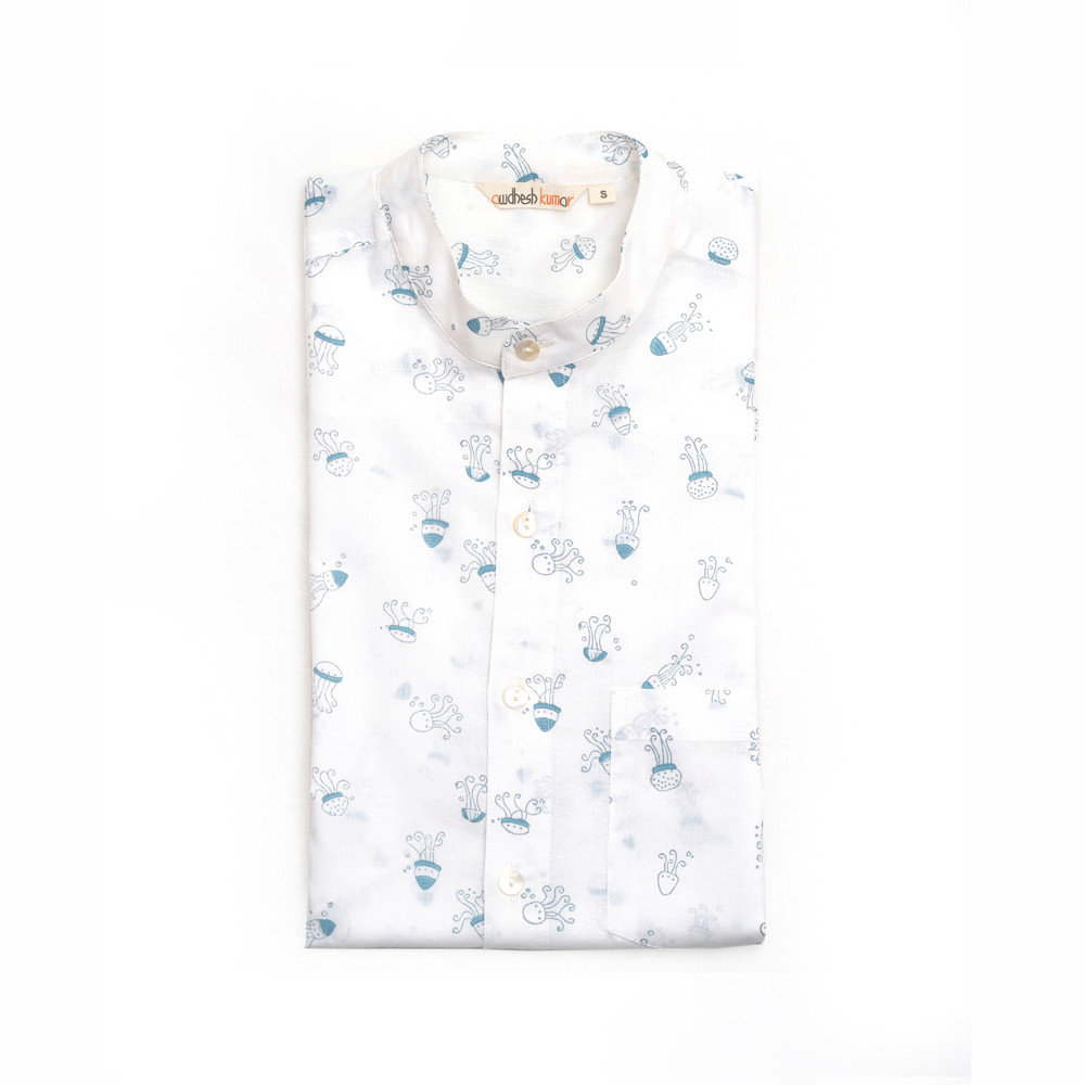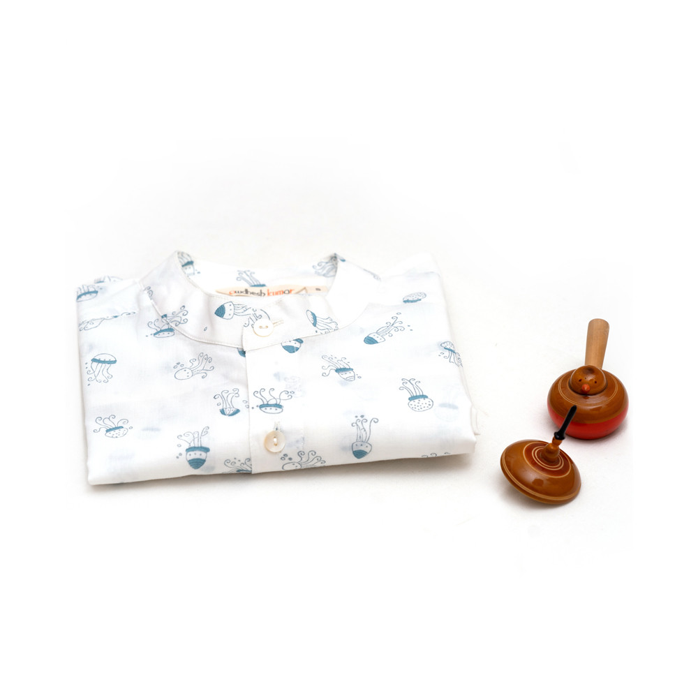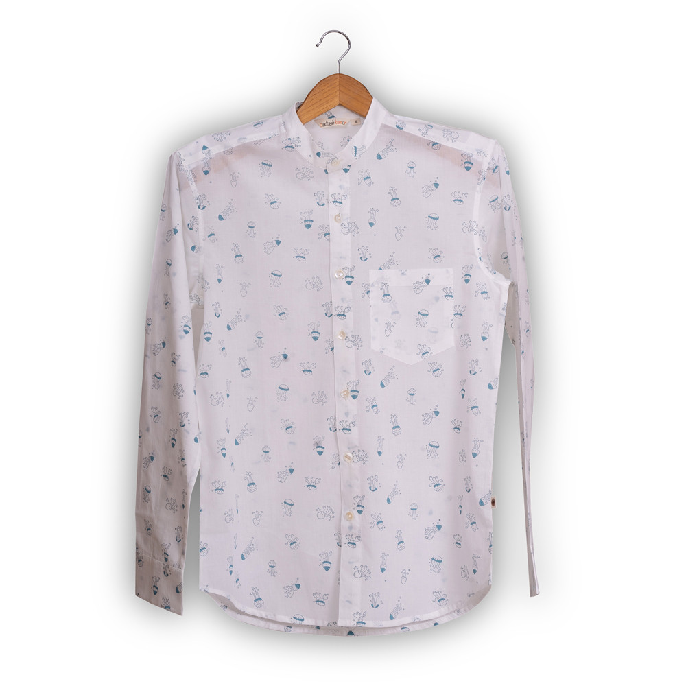Full Sleeve Indian Hand Block Print Shirt Jelly Fish Design Shirt 100% Cotton Fabric100% Cotton Fabric