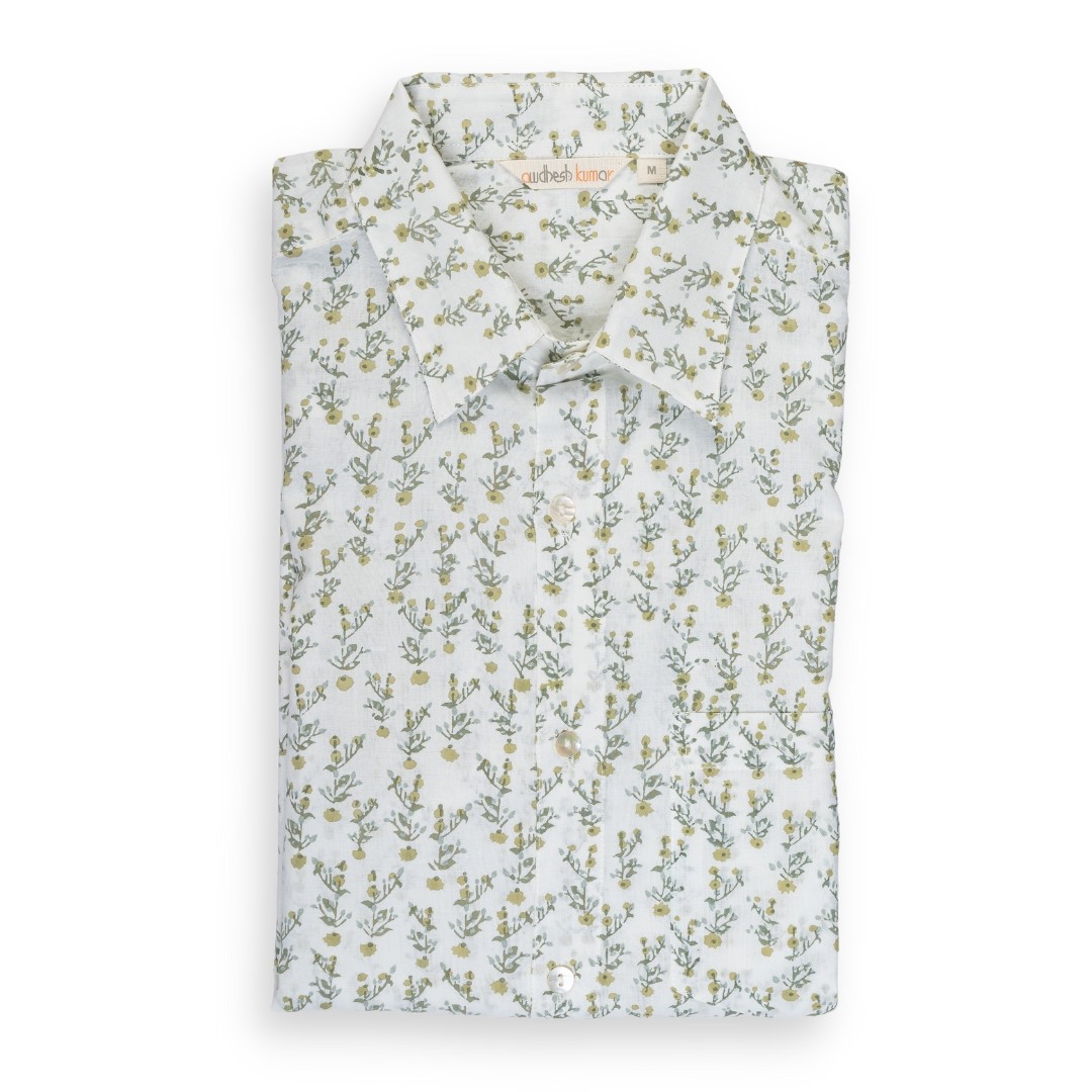 This is hand block printed men's Full sleeve shirt, printed by using traditional hand block printing This is hand block printed men's half sleeve shirt, printed by using traditional hand block printing technique, on 100% cotton 60's cambric fabric, with free pigment dyes.