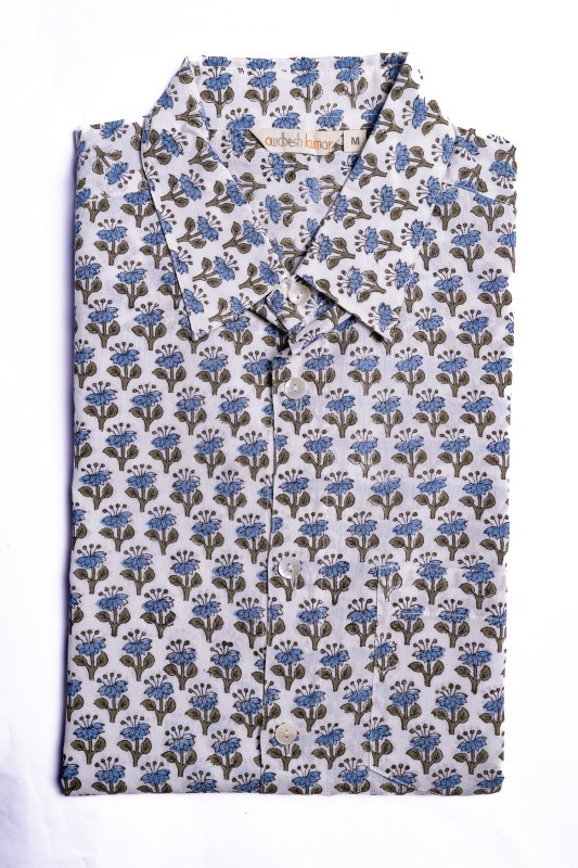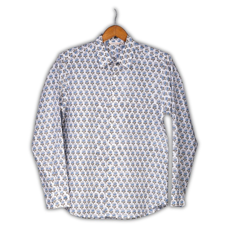 This is hand block printed men's Full sleeve shirt, printed by using traditional hand block printing This is hand block printed men's half sleeve shirt, printed by using traditional hand block printing technique, on 100% cotton 60's cambric fabric, with free pigment dyes.