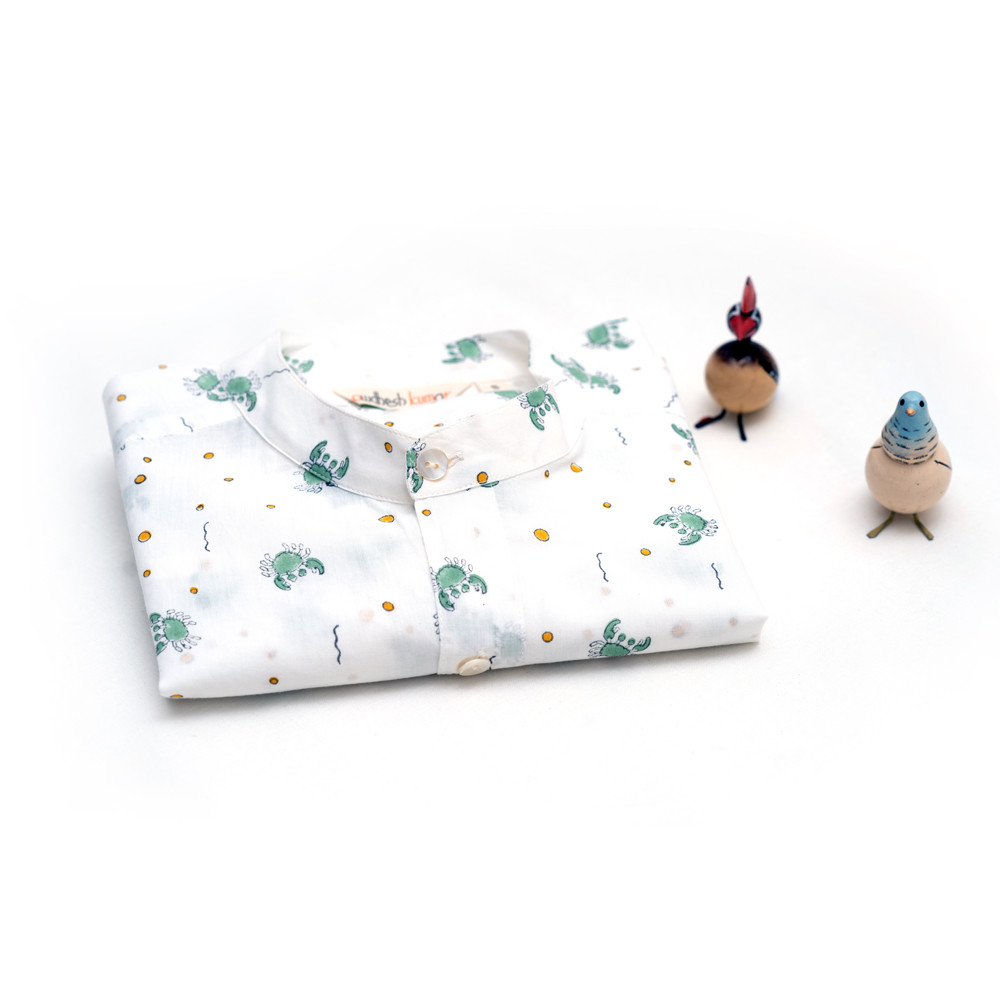 This is hand block printed men's full sleeve shirt, printed by using traditional hand block printing This is hand block printed men's half sleeve shirt, printed by using traditional hand block printing technique, on 100% cotton 60's cambric fabric, with free pigment dyes.