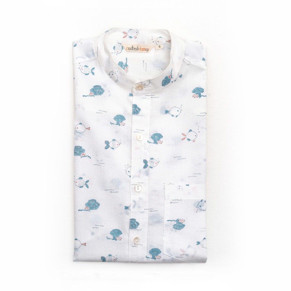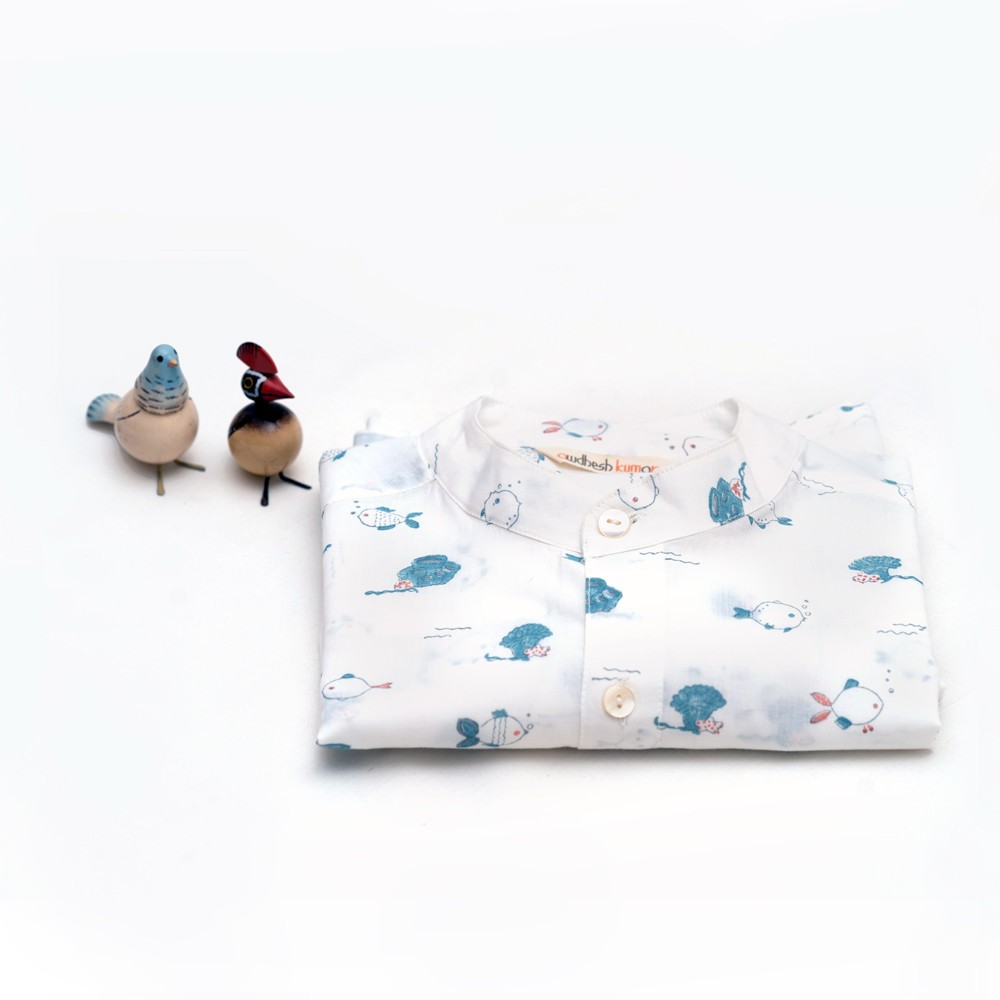 Full Sleeve Indian Hand Block Print Shirt Marine Fish Design Shirt 100% Cotton Fabric