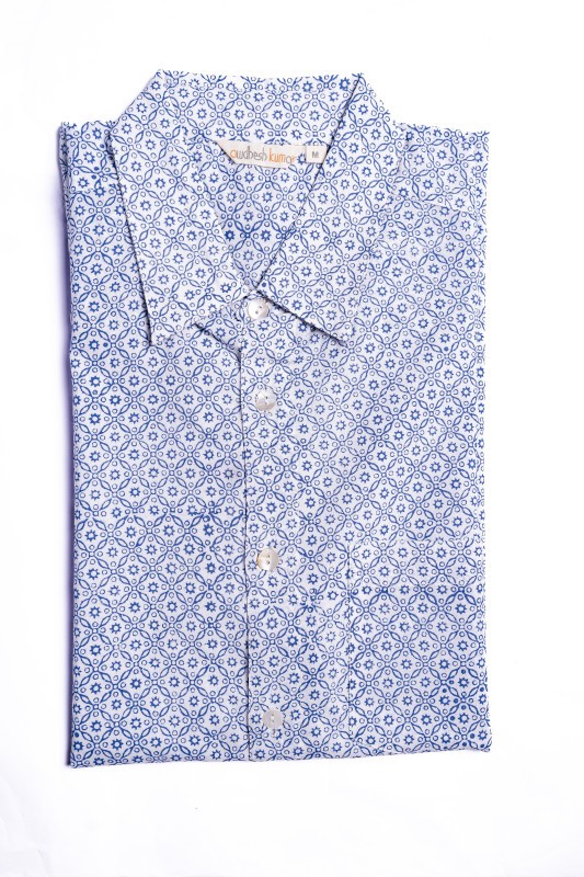 This is hand block printed men's Full sleeve shirt, printed by using traditional hand block printing This is hand block printed men's half sleeve shirt, printed by using traditional hand block printing technique, on 100% cotton 60's cambric fabric, with free pigment dyes.