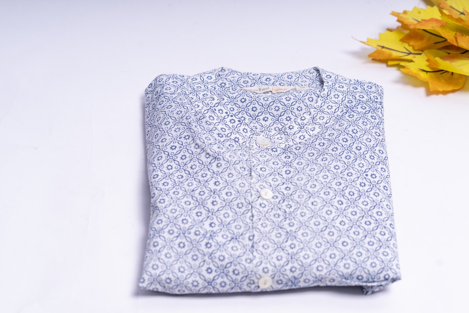 Full Sleeve Indian Hand Block Print Shirt Mini Tessilation Blue Design Shirt 100% Cotton Fabric