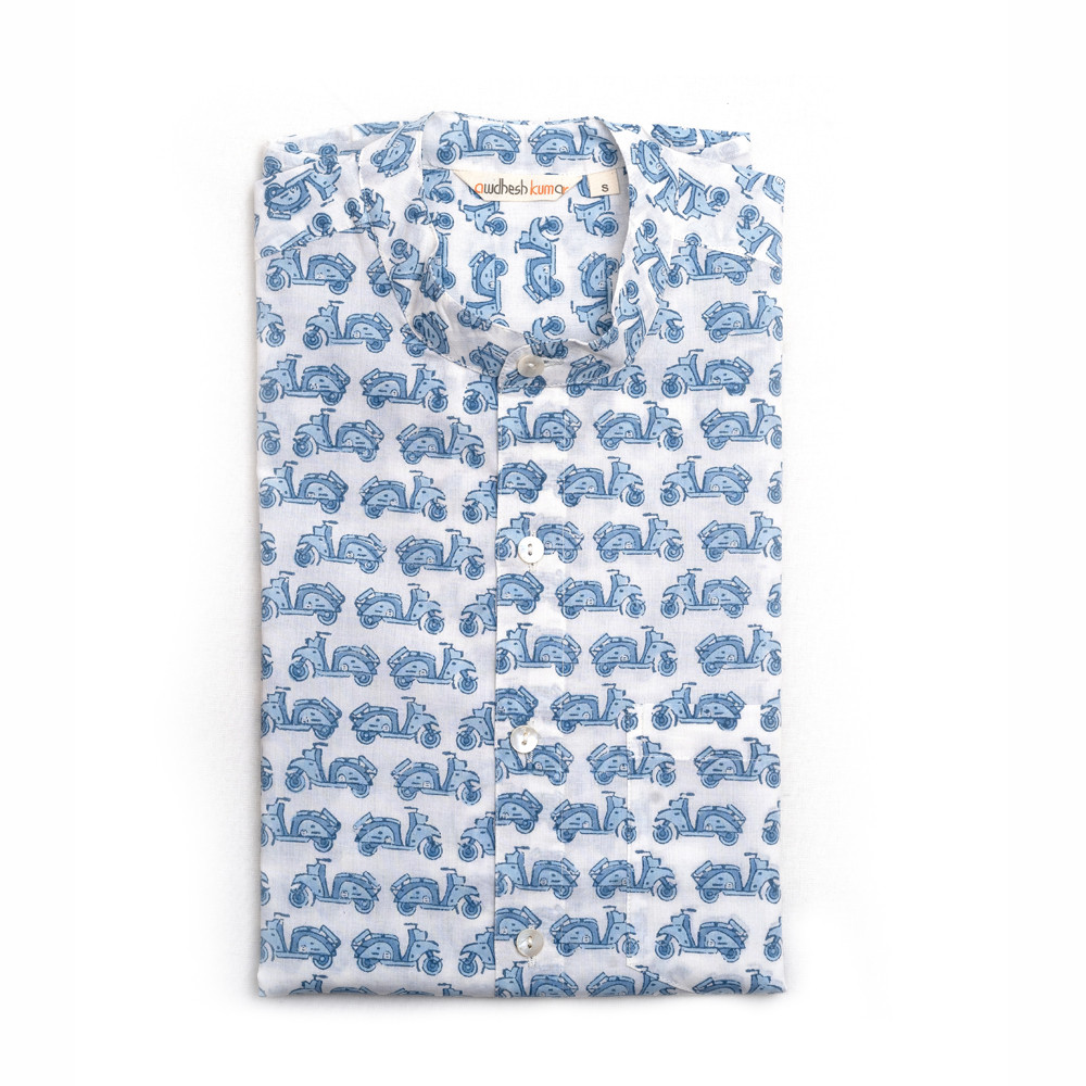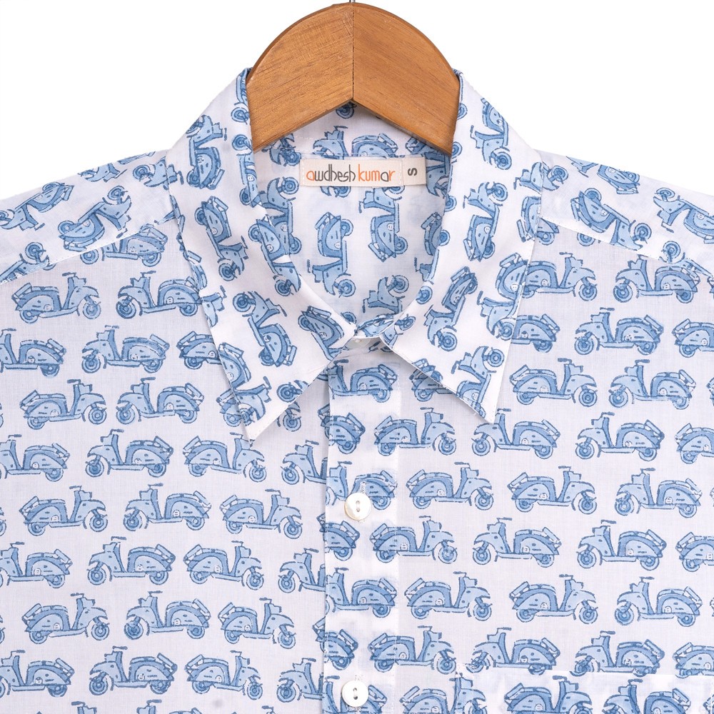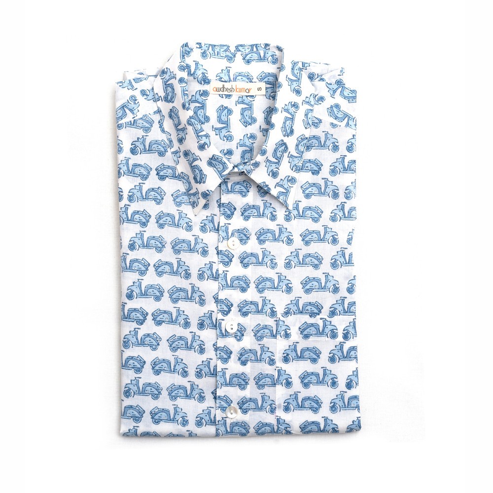 Full Sleeve Indian Hand Block Print Shirt Vespa Design Shirt 100% Cotton Fabric