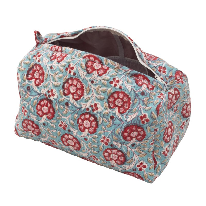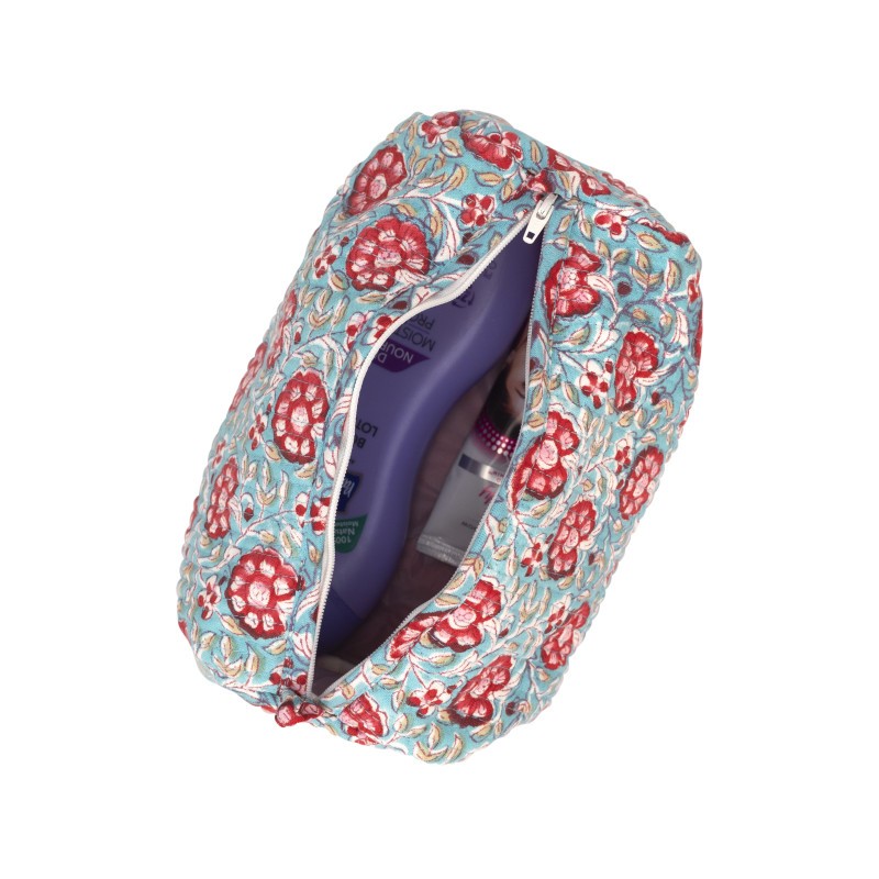 Our handcrafted block-printed cotton quilted makeup and toiletry bags are the perfect blend of style and functionality. Made from high-quality cotton and adorned with intricate hand-printed designs, these bags add elegance to your beauty routine or travel essentials.