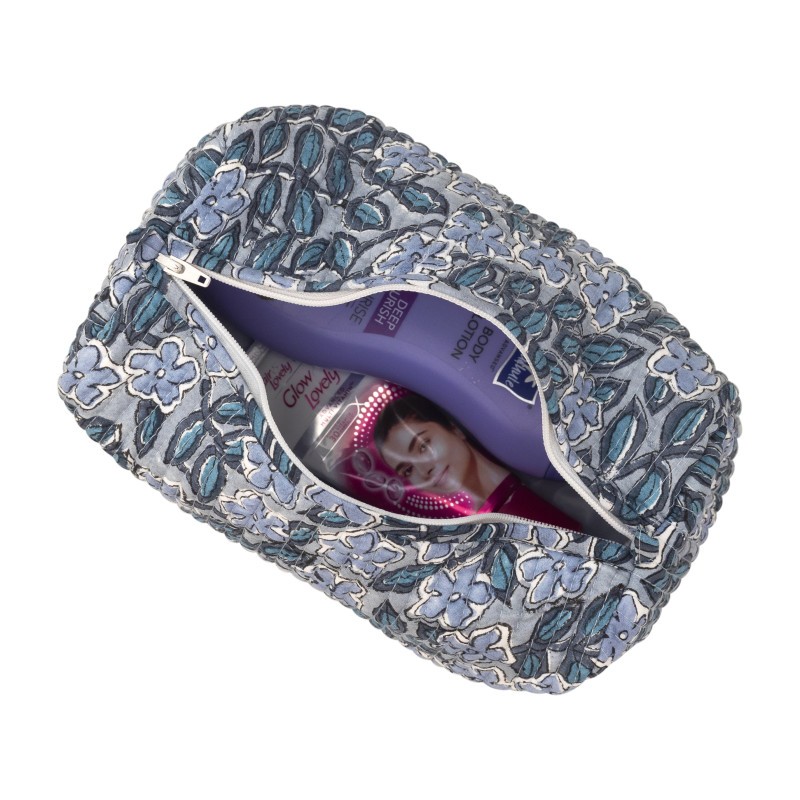 Our handcrafted block-printed cotton quilted makeup and toiletry bags are the perfect blend of style and functionality. Made from high-quality cotton and adorned with intricate hand-printed designs, these bags add elegance to your beauty routine or travel essentials.