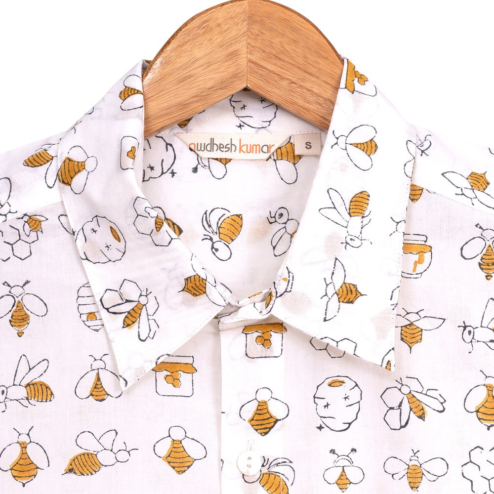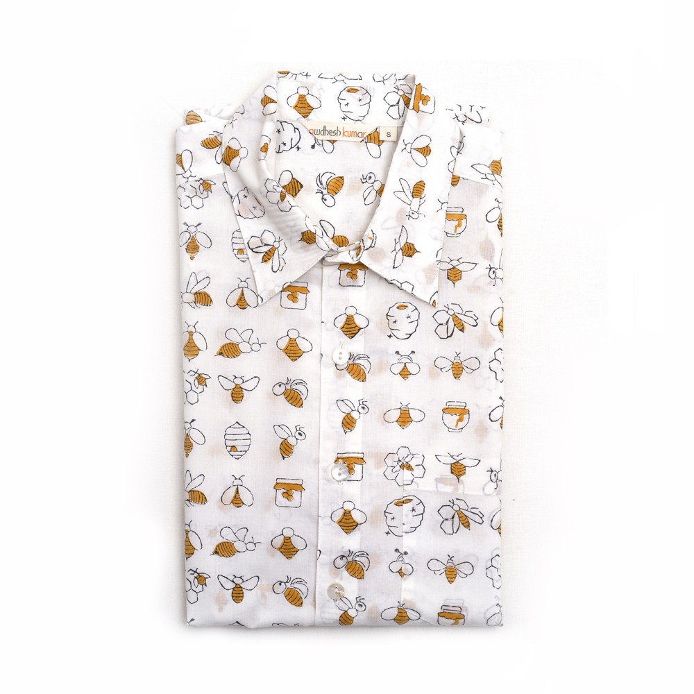 This is hand block printed men's half sleeve shirt, printed by using traditional hand block printing This is hand block printed men's half sleeve shirt, printed by using traditional hand block printing technique, on 100% cotton 60's cambric fabric, with free pigment dyes.