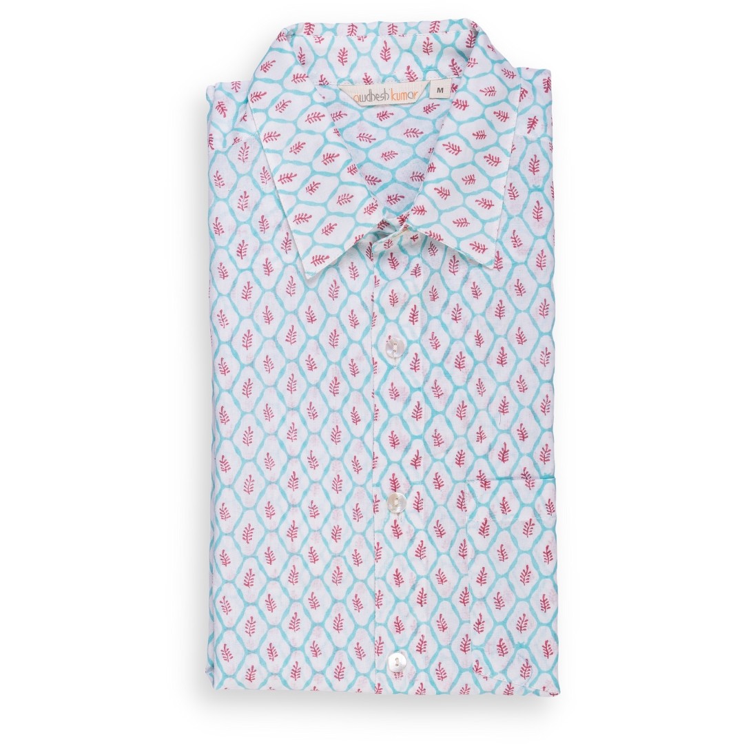 Short Sleeve Indian Hand Block Print Shirt Buti Grid Design Shirt 100% Cotton Fabric