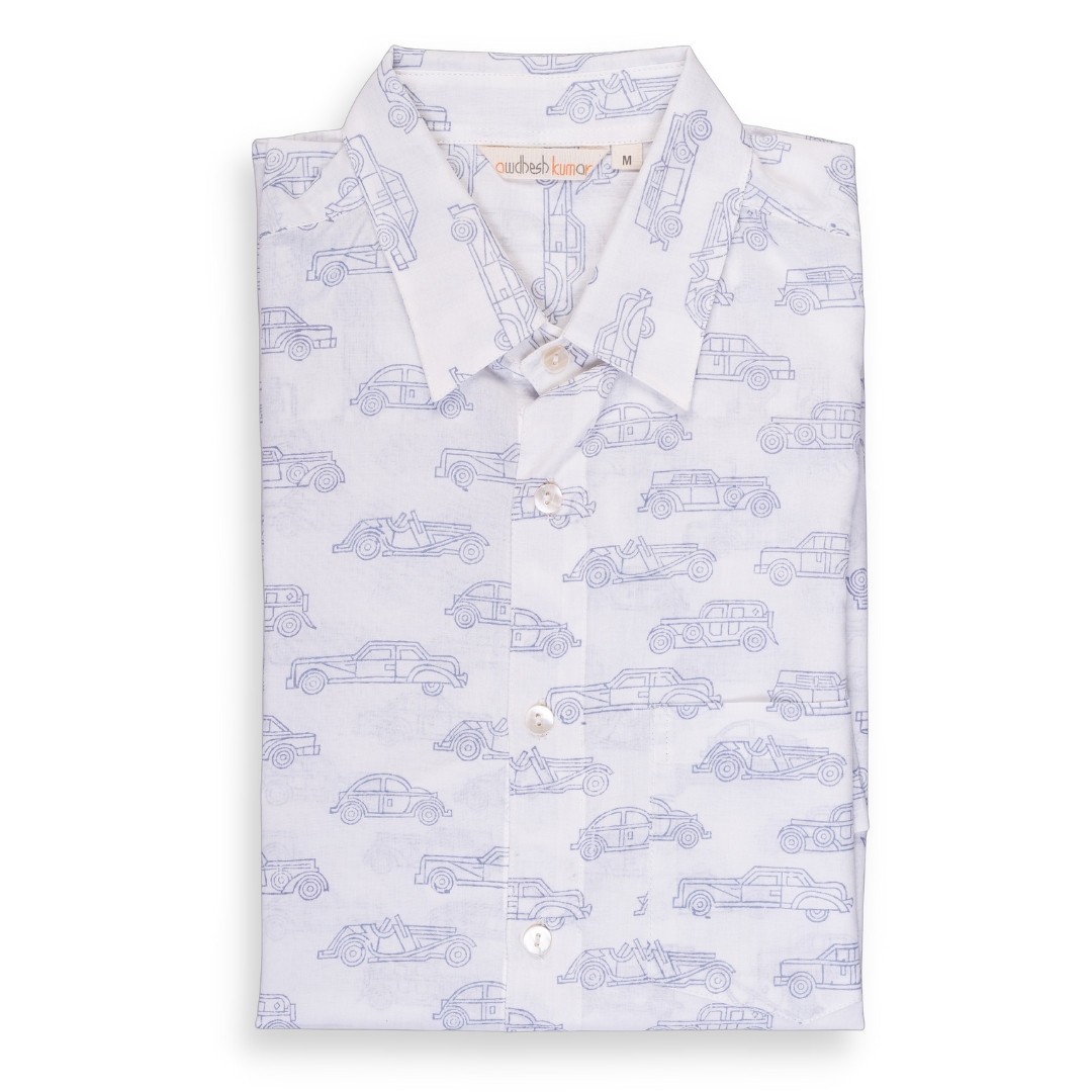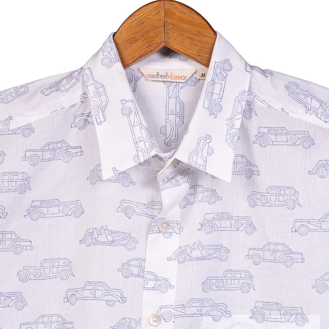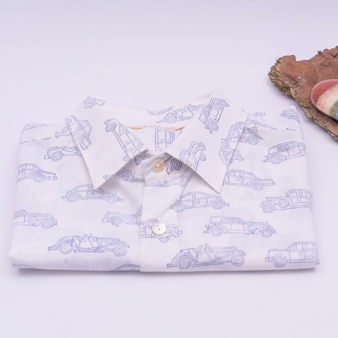 Short Sleeve Indian Hand Block Print Shirt Car Grey Design Shirt 100% Cotton Fabric