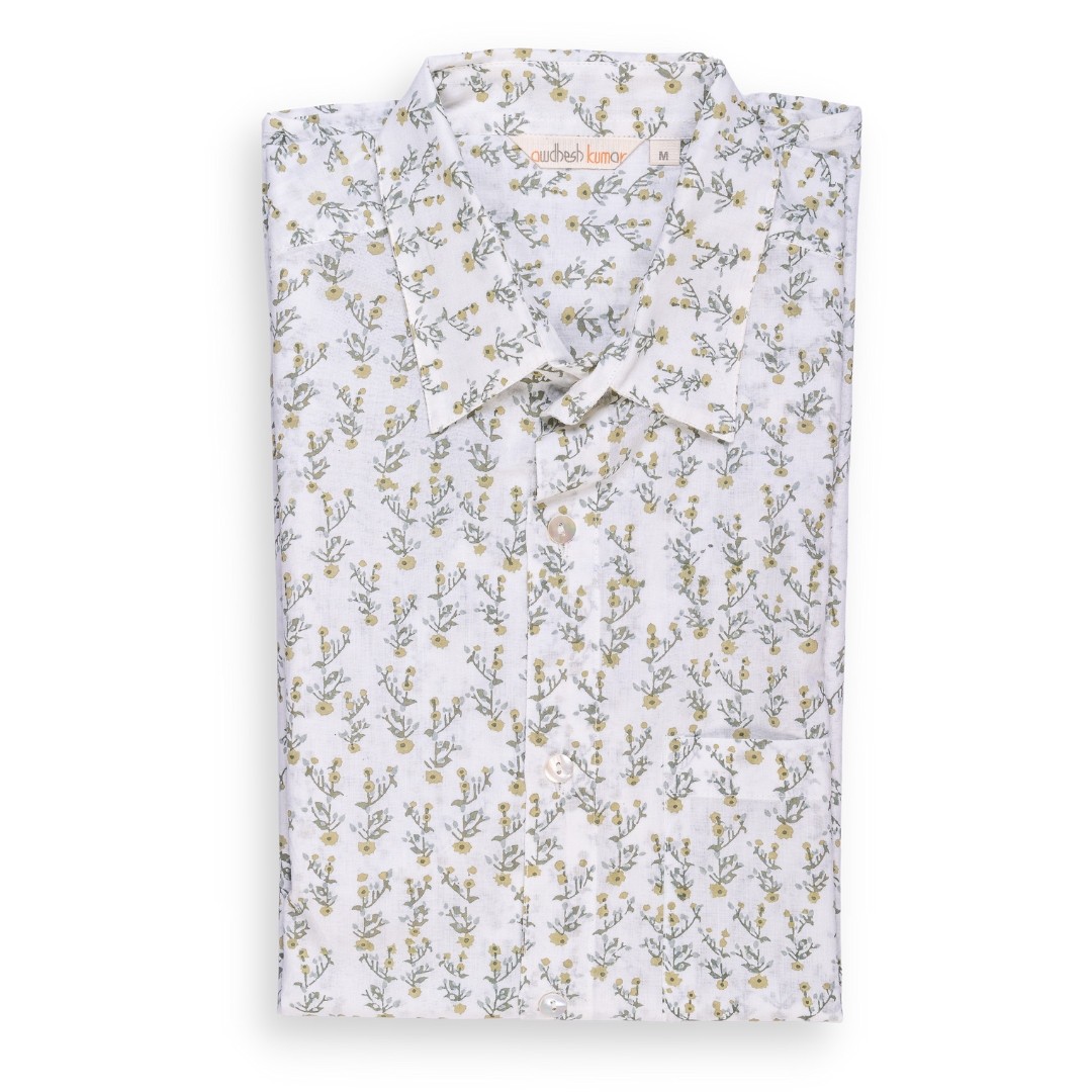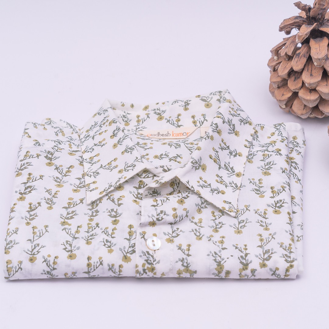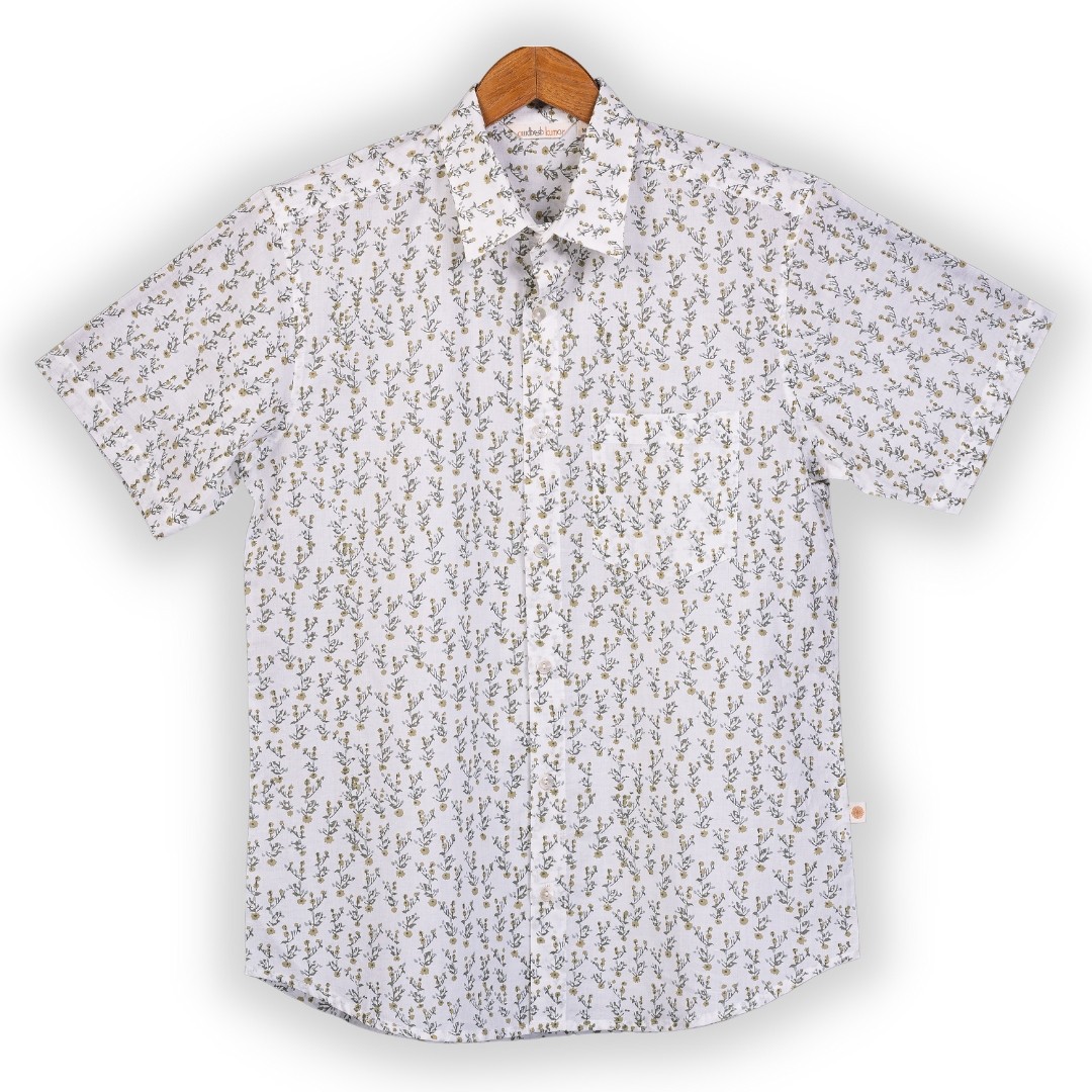 Short Sleeve Indian Hand Block Print Shirt Jungle Buti Design Shirt 100% Cotton Fabric