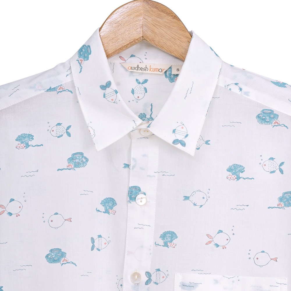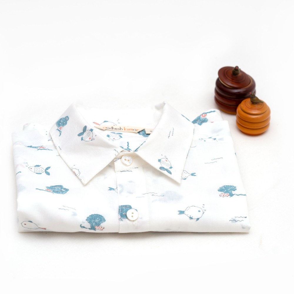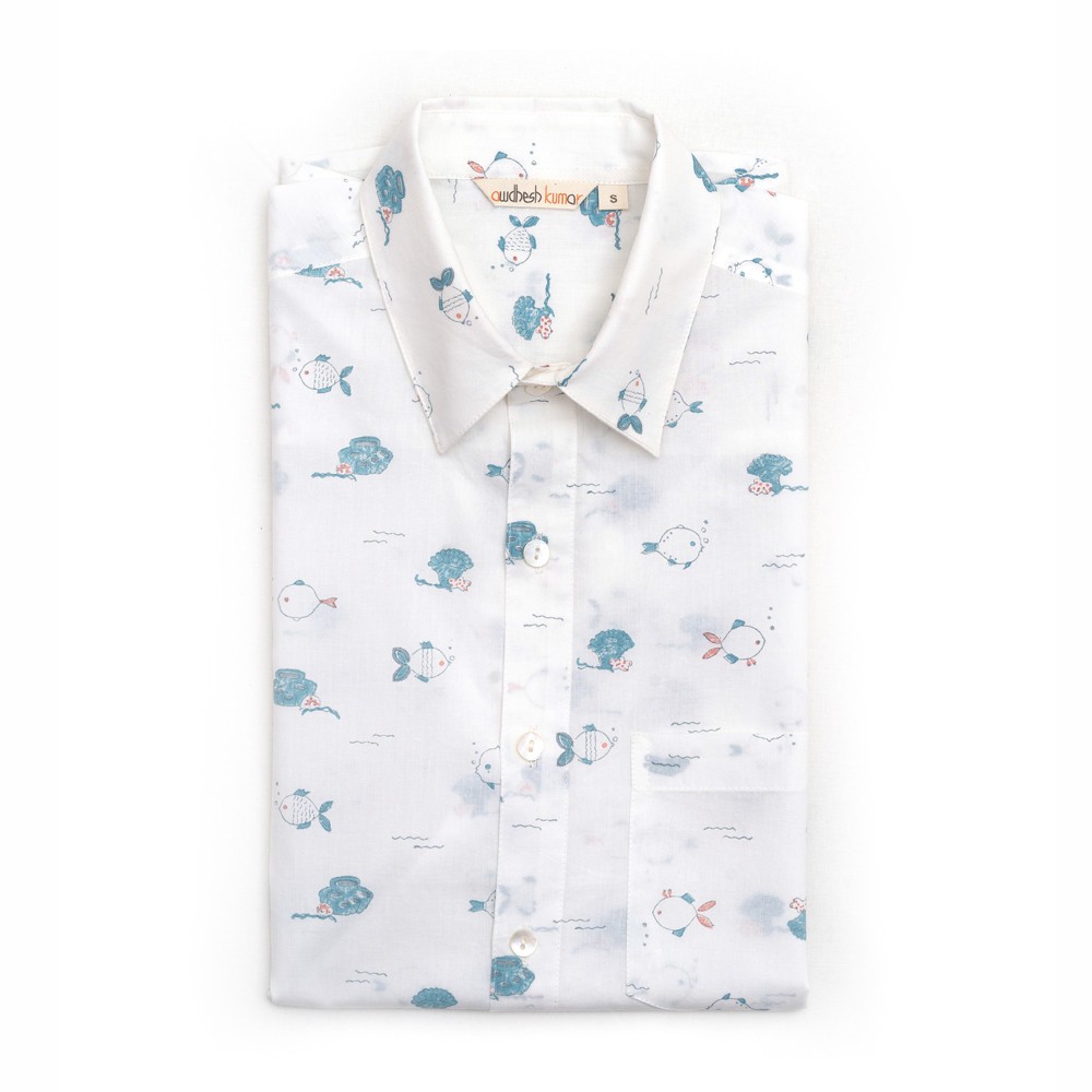 Short Sleeve Indian Hand Block Print Shirt Marine Fish design shirt 100% Cotton Fabric
