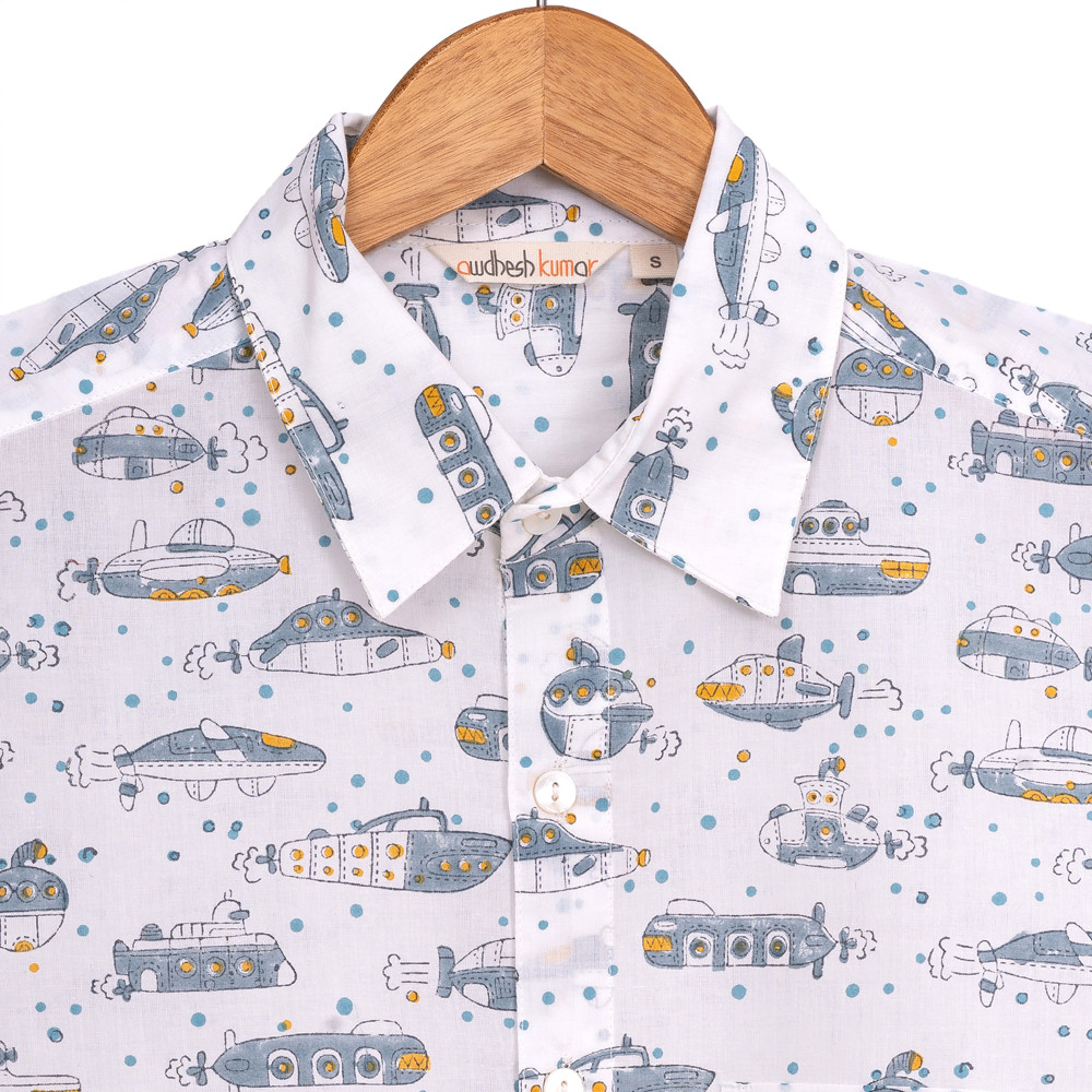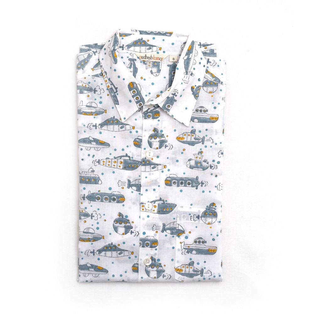 This is hand block printed men's half sleeve shirt, printed by using traditional hand block printing This is hand block printed men's half sleeve shirt, printed by using traditional hand block printing technique, on 100% cotton 60's cambric fabric, with free pigment dyes.