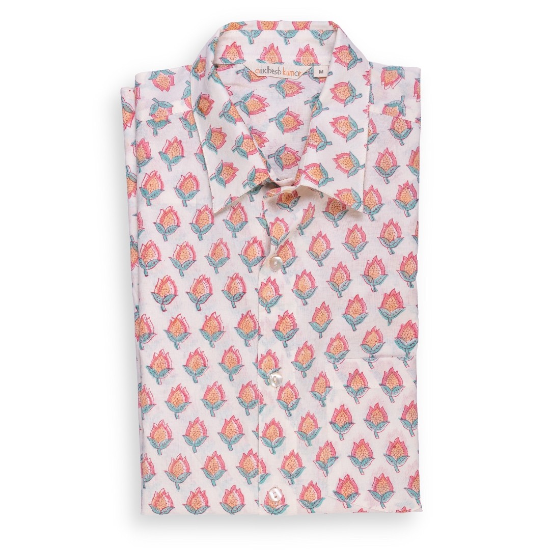 Short Sleeve Indian Hand Block Print Shirt Pastel Buti Design Shirt 100% Cotton Fabric