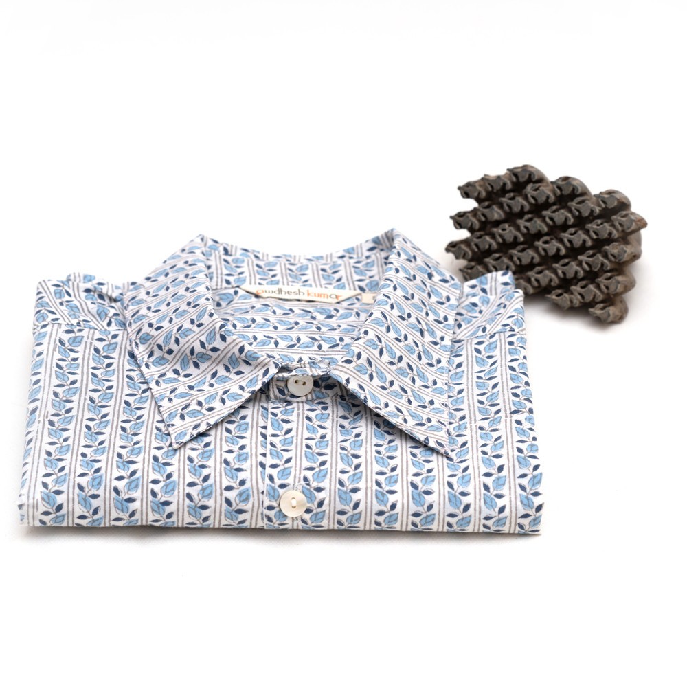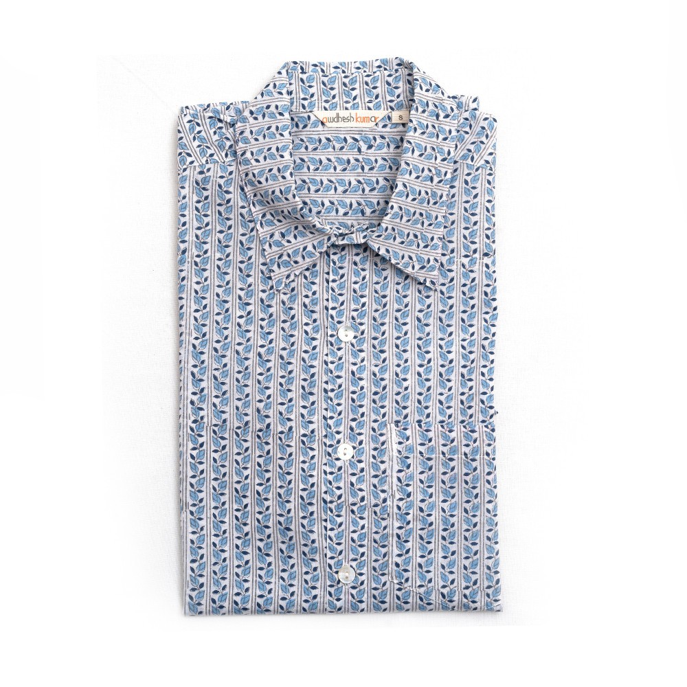 This is hand block printed men's half sleeve shirt, printed by using traditional hand block printing This is hand block printed men's half sleeve shirt, printed by using traditional hand block printing technique, on 100% cotton 60's cambric fabric, with free pigment dyes.