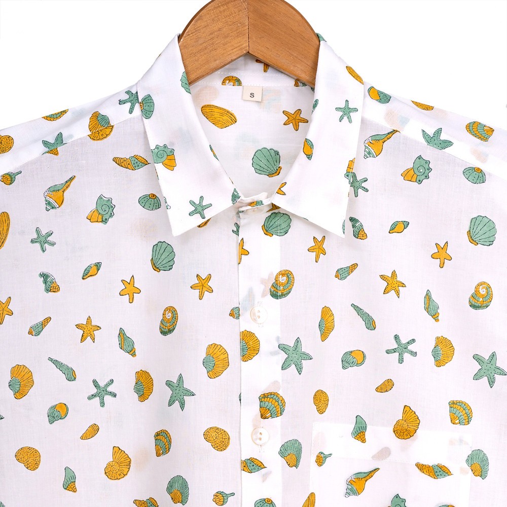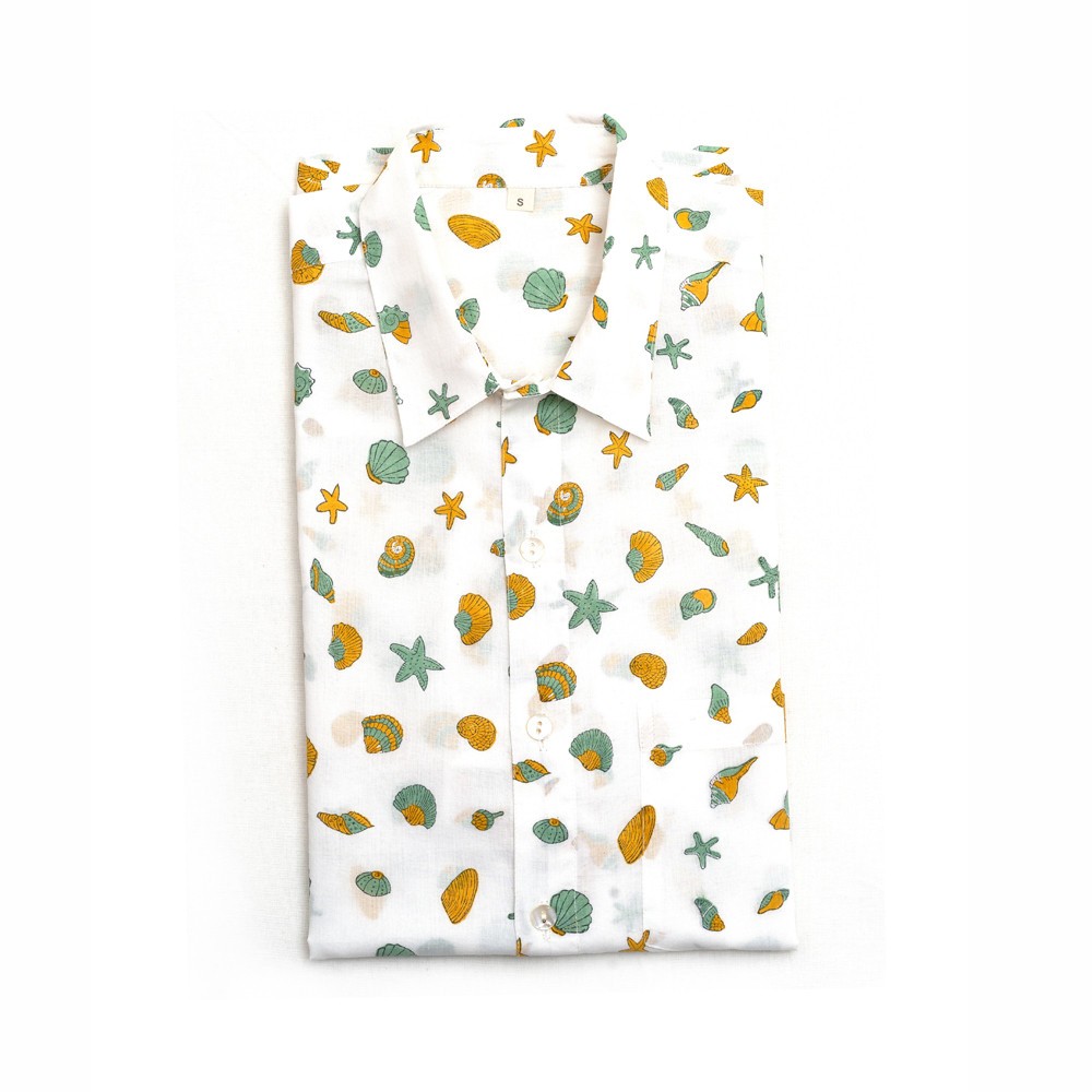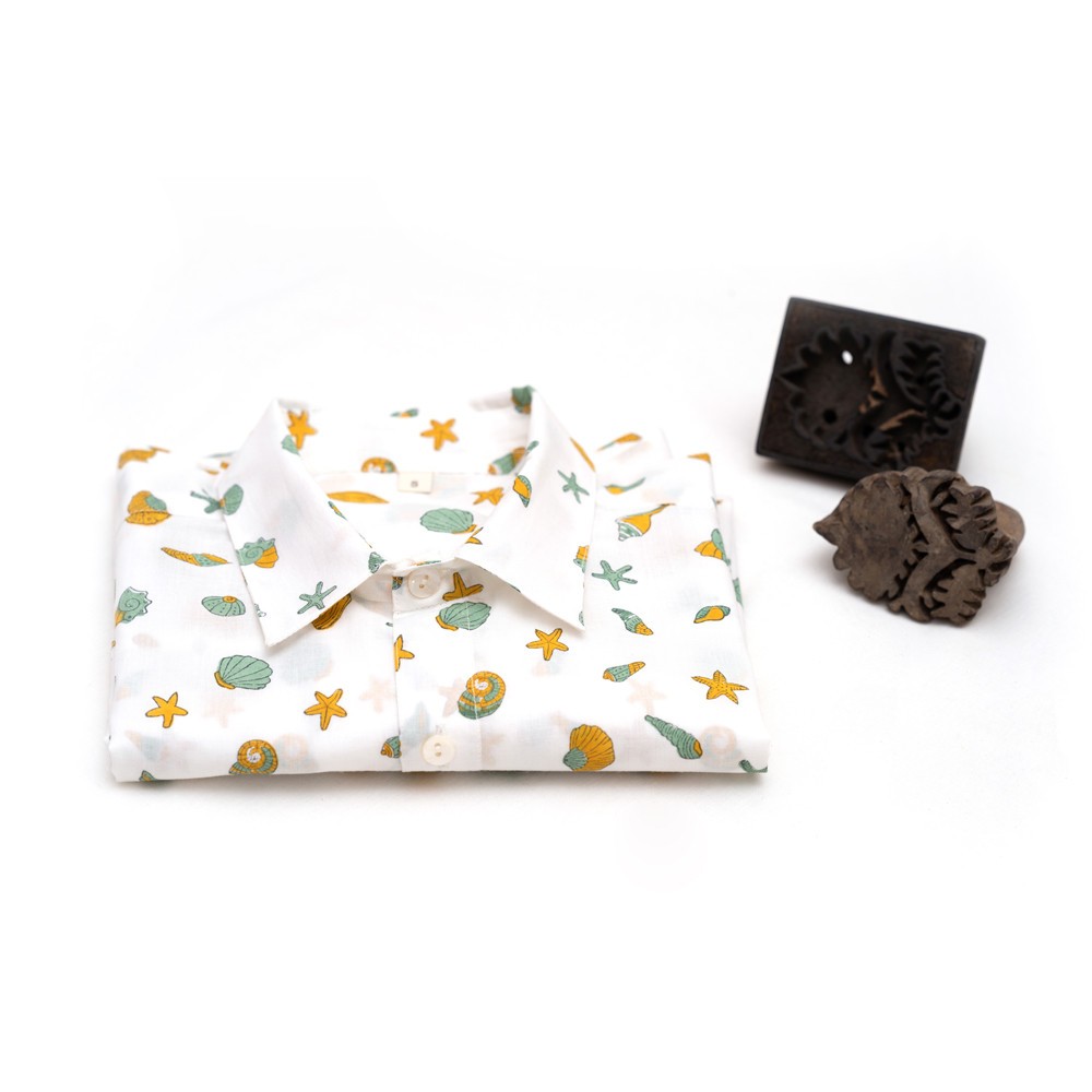 This is hand block printed men's half sleeve shirt, printed by using traditional hand block printing This is hand block printed men's half sleeve shirt, printed by using traditional hand block printing technique, on 100% cotton 60's cambric fabric, with free pigment dyes.